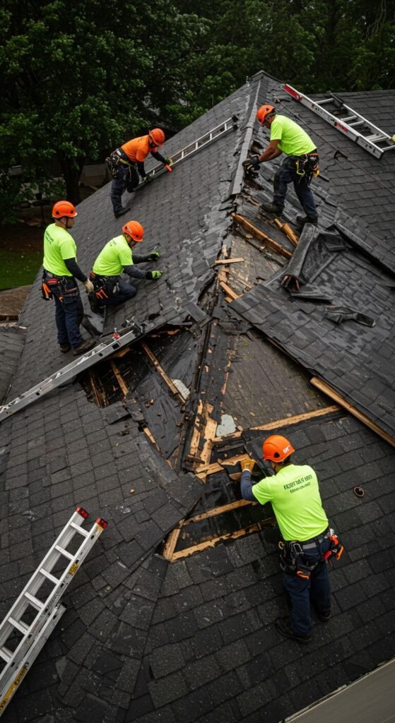 We understand that roof problems don’t always happen during business hours. That’s why we offer 24/7 emergency roof repair services to address urgent issues before they become major problems. Whether you need a simple shingle replacement, a complete roof leak repair, or emergency damage assessment, our licensed and insured team is ready to help.